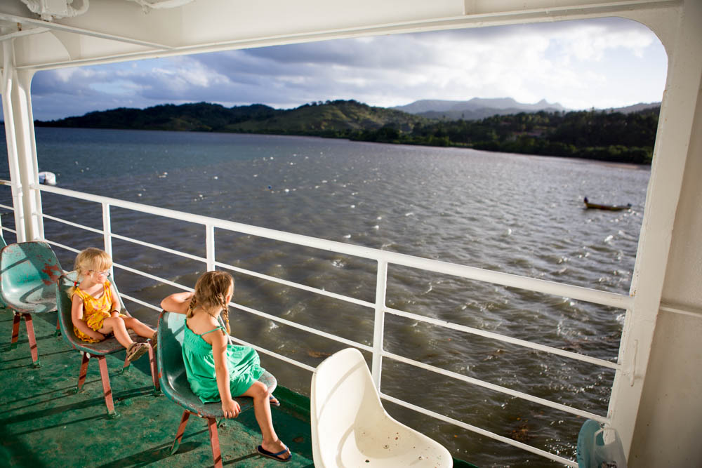 Hanna an Mila on the ferry to Ovalau Island in Fiji (2014)