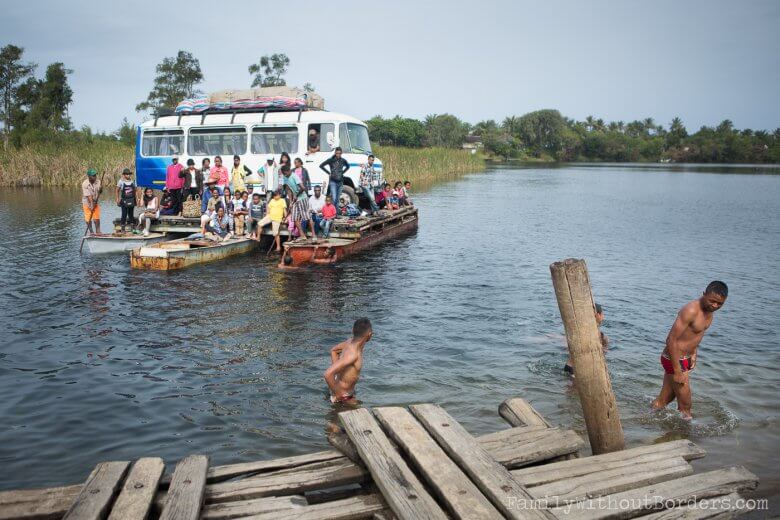 Boat ferry over the the Canal des Pangalanes in Ambila-Lemaitso (Madagascar)