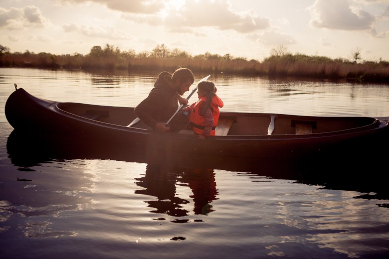 Daddy and daughter on the canoe