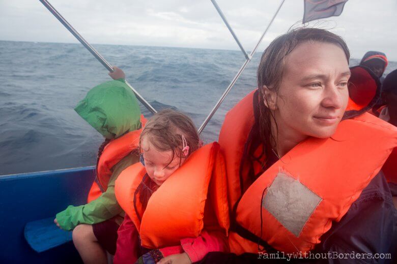 After 3 hours of rain an whale watching we are soaking wet.