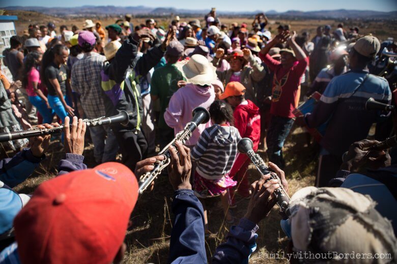 Live music and the family dancing next to their crypt.