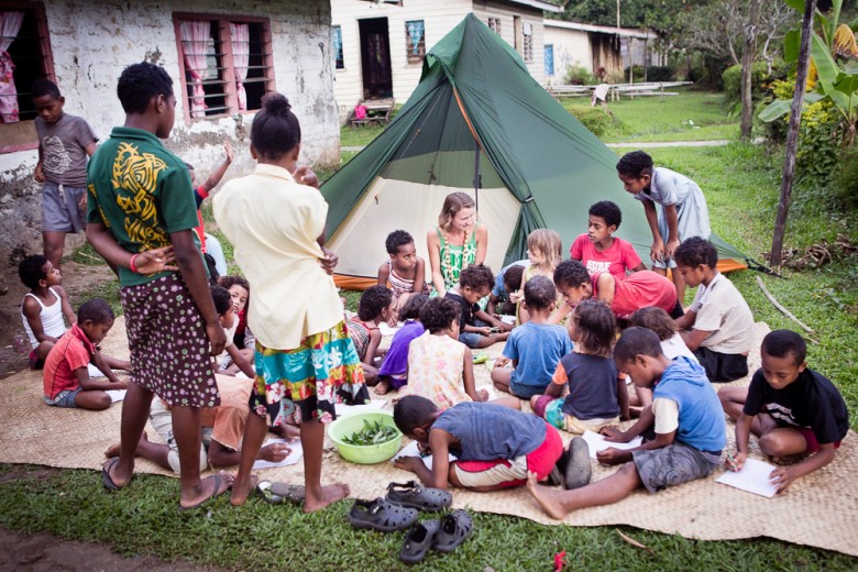 Anna is making the kids painting pictures