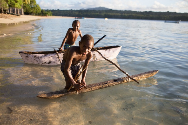 Kids on the traditional outrigger canoe