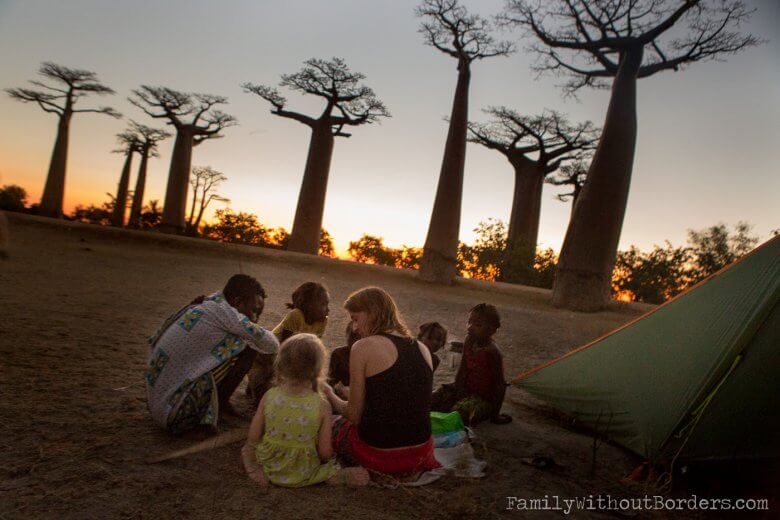 Children from the Village sitting at our tent near the Baobab Avenue (Magadascar, Morondava)