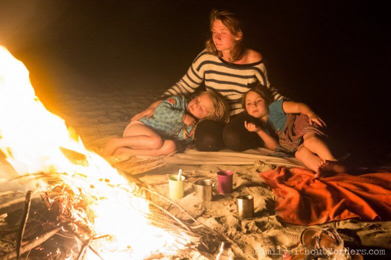 Camping and campfire on the beach, Mahambo, Madagascar, Camping