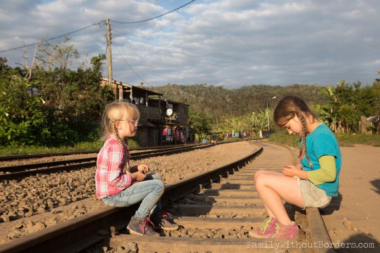 Sitting on the train track is no problem in Andasibe (near Moromanga, Madagascar)
