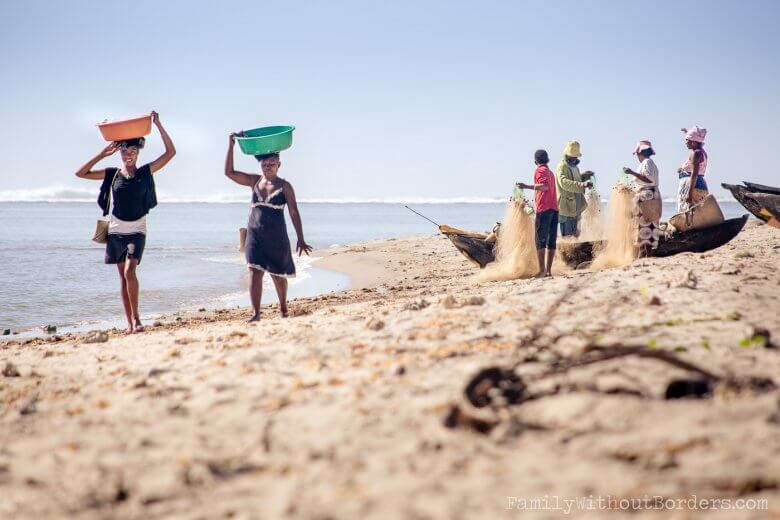 Women carrying fish in Mahambo (Madagascar)