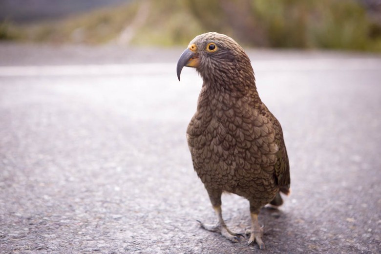 A Kea parrot on in the Milford Sound
